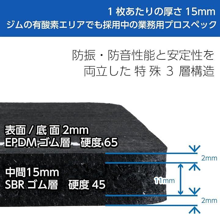 ・表面と底面の2mmは固めのEPDMゴム素材、中間は柔らかいSBRゴム素材を利用した3層構造で、ショックを吸収しつつも表面は固く安定します。
