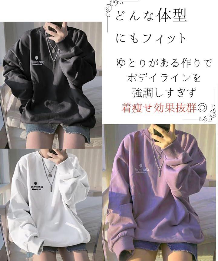 「ゆったり着られる。シンプル可愛いロングトレーナー」「トレーナー レディース 薄手 スウェット」は、ゆったりとしたシルエットが魅力のロングTシャツタイプのスウェット。