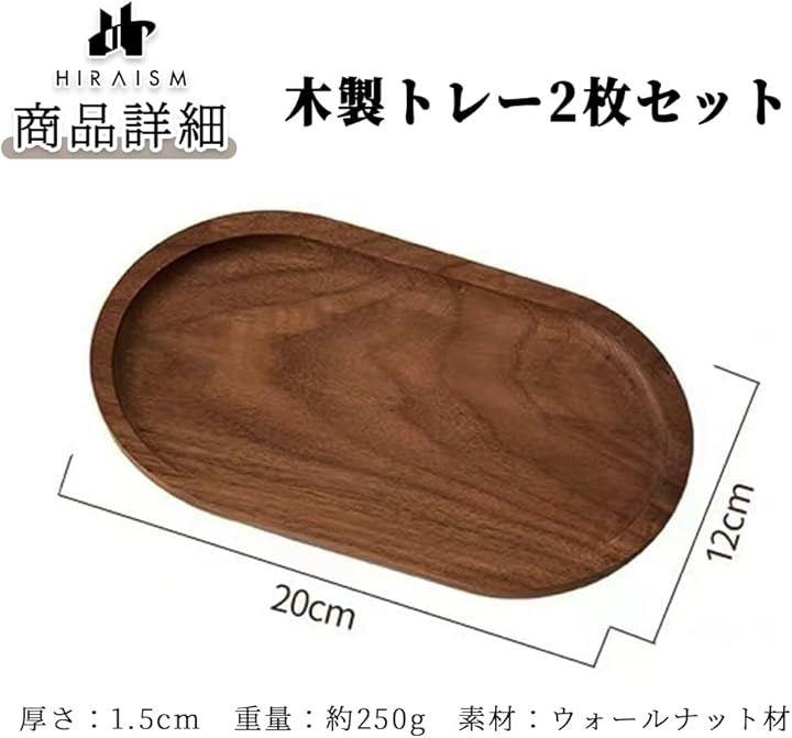 「商品内容」木製トレー2枚セット 横幅20cmx縦幅12cmx厚さ1.5cm 250g ウォールナット
