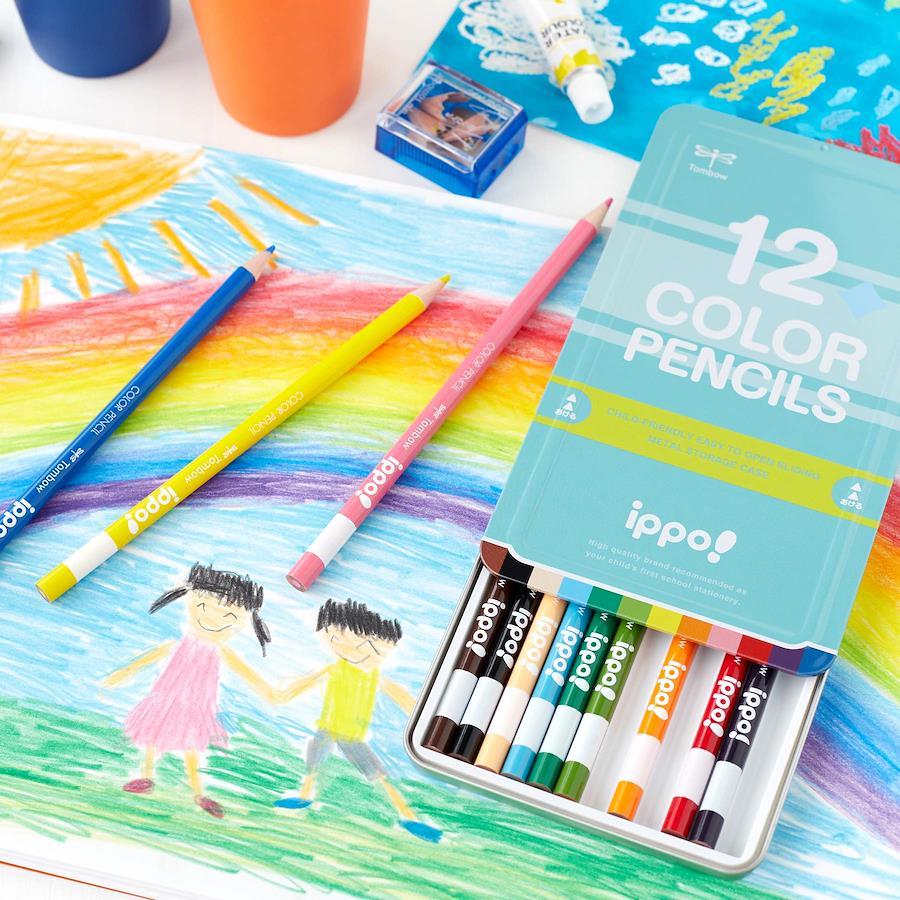 小学生にピッタリなスライド式缶入り色鉛筆。弱い力でも簡単に開け閉めが出来る。