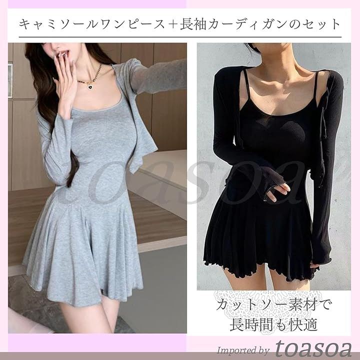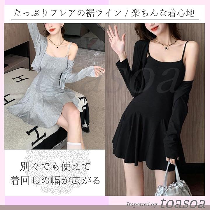 ワンピとカーデ、どちらも別々でも使えるのでコーディネートの幅が広がります。