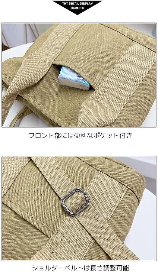 「商品仕様」素材:キャンバス生地 サイズ:縦22cm x 横23cm x マチ14cm 重さ:約270g