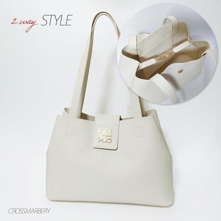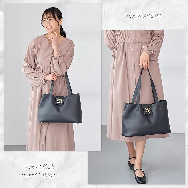内側のフックによりスクエア型と台形の二つのデザインが楽しめる変形トートバッグゴールドのロゴプレートがおしゃれなアクセントとなりマグネットボタンの開閉で荷物の出し入れも簡単内側にはオープンポケットが1つ付いていますA4サイズや500mlのペットボトルも収納可能。シンプルなデザインなのでどんなシーンでも活躍してくれます。「素材」合成皮革「仕様」開閉:マグネットボタン内側:オープンポケットx1「サイズ」横幅:38cm 高さ:25cm マチ:14cm持ち手高さ:28cm「重さ」約735g* 照明、モニター環境等により色目が若干異なる場合がございます。