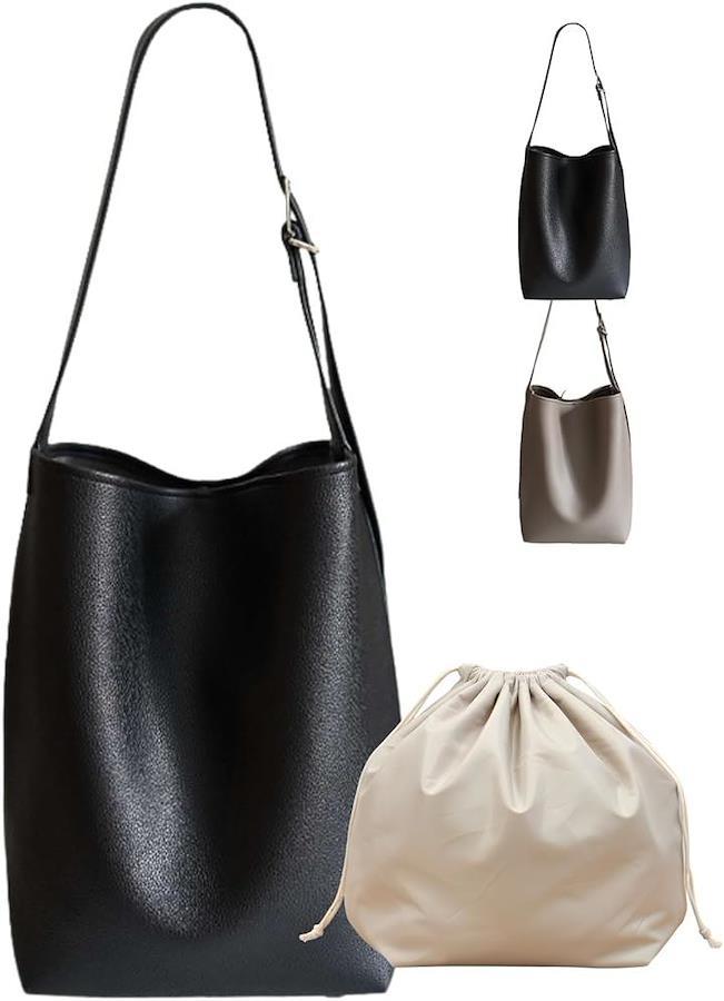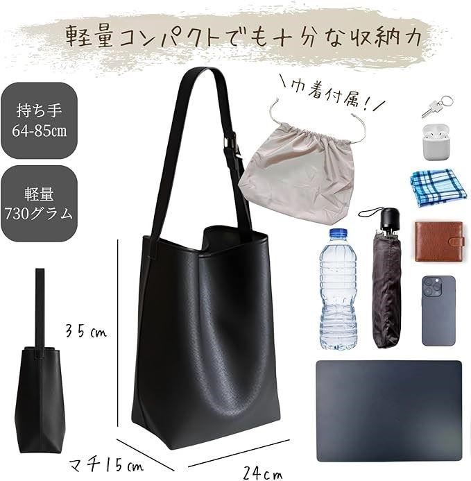 「自立型&撥水レザーで美しいシルエット」 底板付きで自立するため型崩れしにくく、荷物を入れても上品なフォルムをキープ。