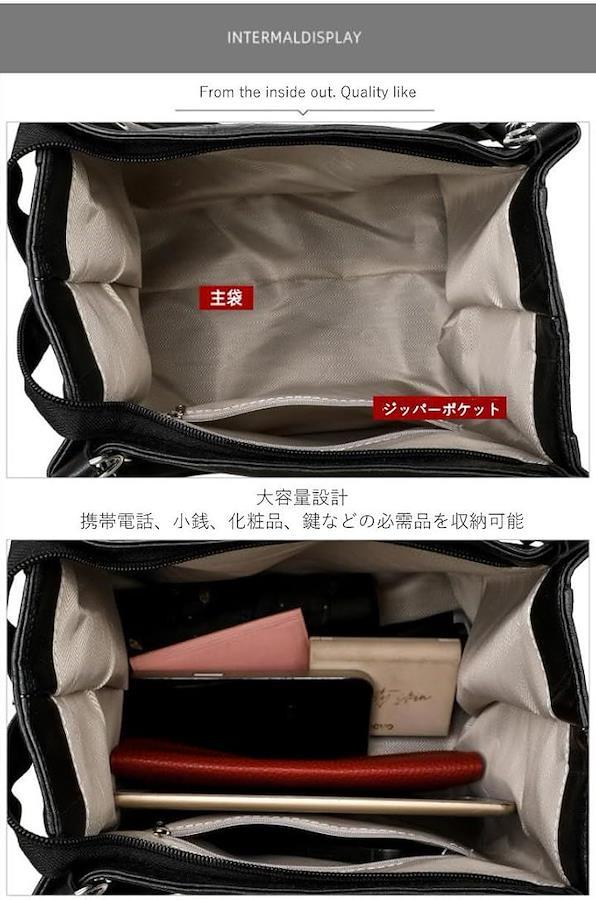 内ポケット付きでスマホやリップもすぐ取り出せる。