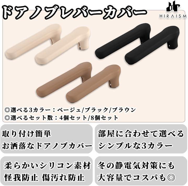 「商品内容」ドアノブレバーカバー:4個/8個 カラー:ベージュ/ブラック/ブラウン 素材:シリコン 本体サイズ:15x4.5cm *サイズ詳細は画像にてご参照ください。