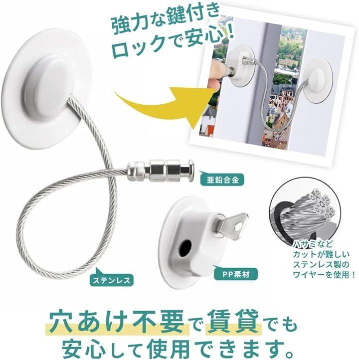 ワイヤー部分はビニールコーティングなので窓や家具などに強く当たっても傷は付きにくいです。