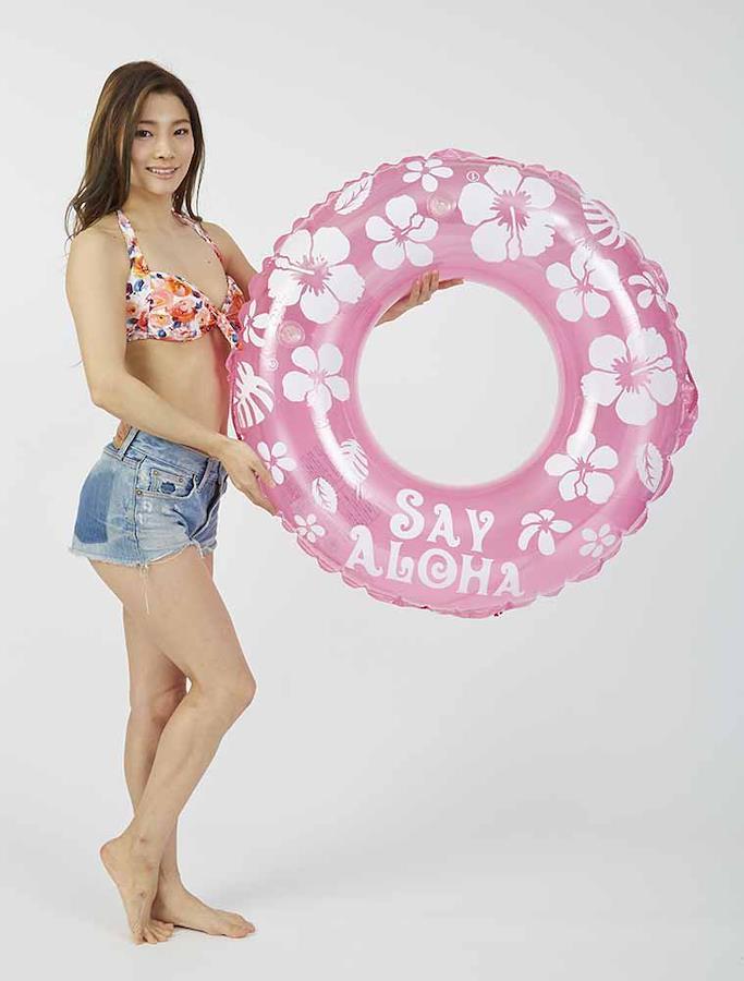 シンプルでありながら夏らしいハイビスカスのプリントがされた浮輪。(より) 本体サイズ :90cm 対象性別 :男女共用 対象年齢 :12歳から 主な製造国 :中国 安全基準 :ST