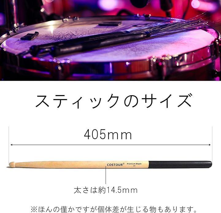 ▶材質:メープル ▶重量:1本 (片方) 約 40g ▶長さ:約 405mm ▶太さ:約14.5mm ▶サイズ:5A ▶チップ:三角型 ( ティアドロップ 円錐 )