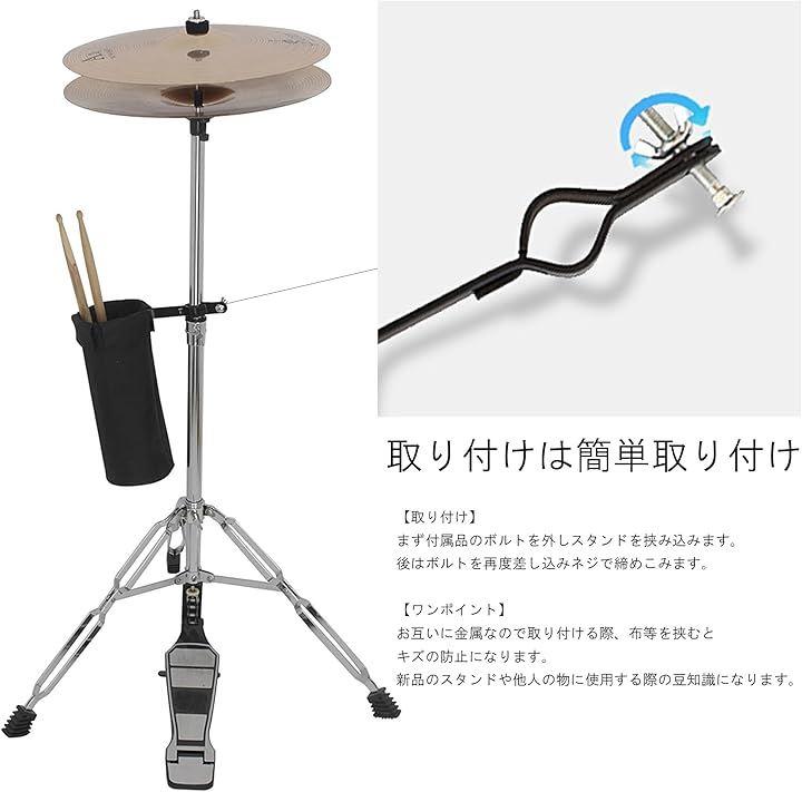 様々なスタンドに取り付け可能なので、様々なドラムスティック(ロッド、ブラシ、ナイロンブラシ等の特殊なスティック類)によって使い分けるのも便利です。