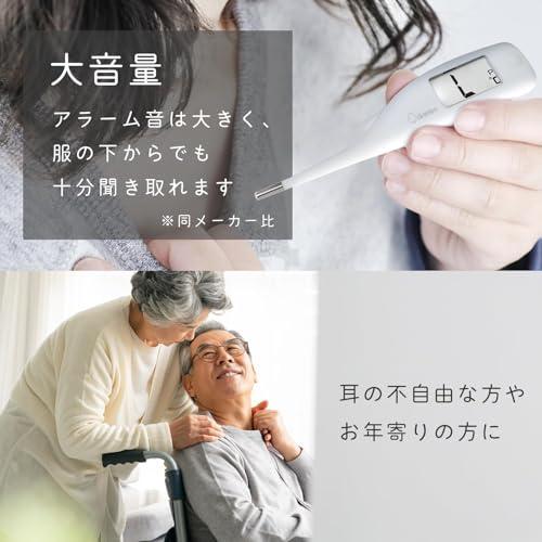 【先が曲がるやわらかタッチ体温計】先が曲がる便利な体温計です。先端部分が曲がるため、暴れてしまう赤ちゃんや小さな子どもの熱を簡単に測ることができる、はかりやすい体温計です。やわらかいから、わきに挟んでも痛くありません。もちろん大人の方にもおすすめです。 【検温時間15秒の予測式】検温スピードわずか15秒の予測式体温計です。「非接触は正確性が不安だけど、実測式では時間がかかる」という方にぴったりの検温が早い体温計です。抗菌樹脂仕様だから衛生的に使えます。 【大音量の2種類のブザー音で体温をお知らせ】測定結果が37.8℃以上の時は、通常とは異なるブザー音でお知らせしてくれます。高熱の時は、数字を実際に見なくても素早く気づくことができます。大音量なので、服の中でも十分聞こえます。 【大画面とバックライト】大きな画面で表示が見やすく、バックライトで暗い場所でも使えます。 医療機器認証番号:第304AKBZX00028000号