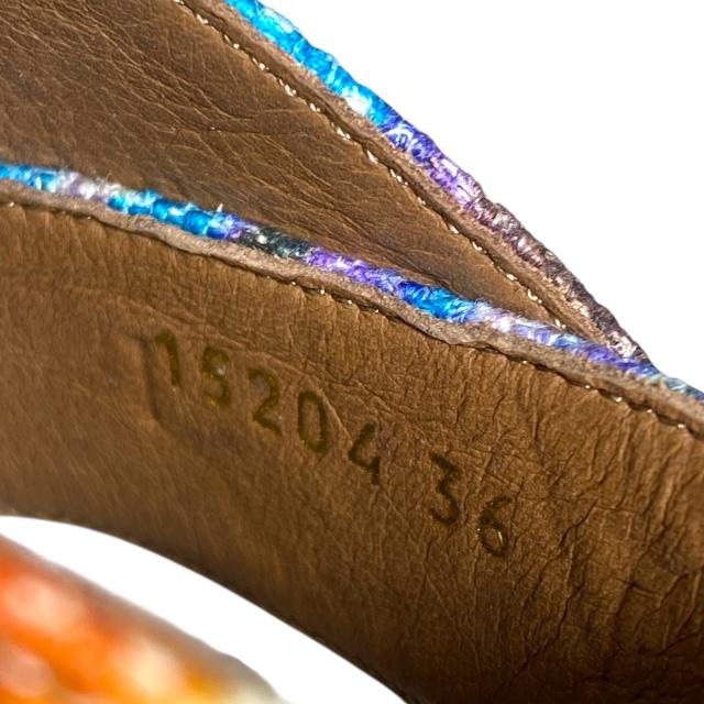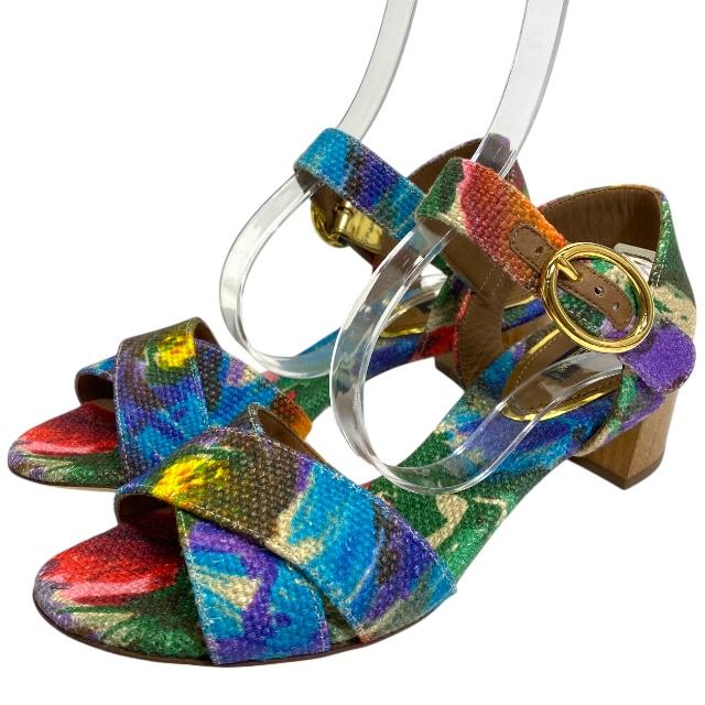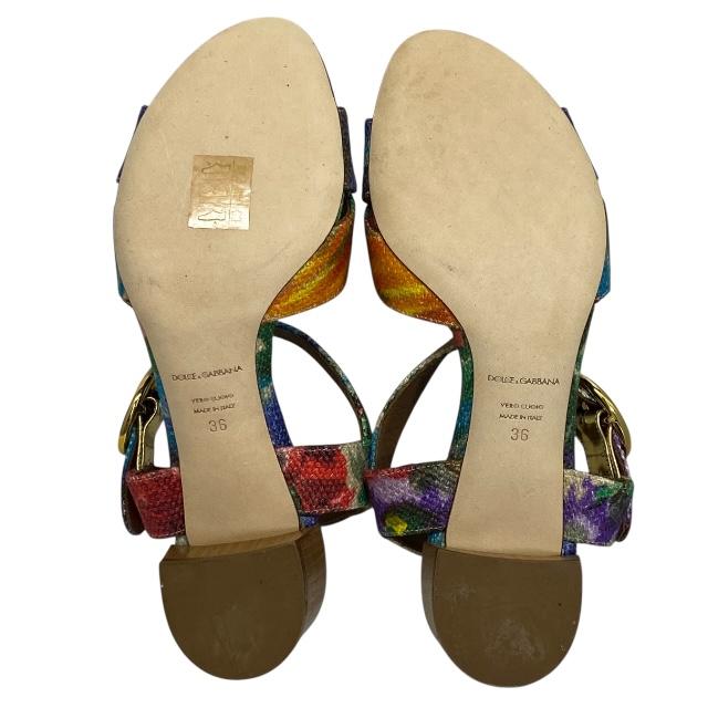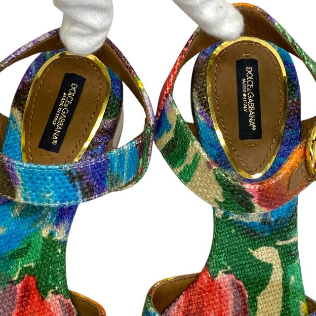 【ブランド】 DOLCE&GABBANA ドルチェ&ガッバーナ【商品名】 アンクル ストラップ サンダル【商品番号】15204【カラー】マルチカラー【サイズ】 アッパー幅:8cm ヒール:4.5cm 表記サイズ:36(約23cm)【素材】 -【付属品】 保存袋【ランク】 ABランク【コメント】 外側:ソール薄汚れ/スレ(写真参照) 内側:薄スレ(小)【管理番号】1013c1751o商品情報