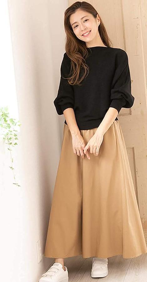 ふわりとしたドルマンとリブ切替の袖が、女性らしいスタイリングを1ランクUPし、秋冬コーデも簡単に。