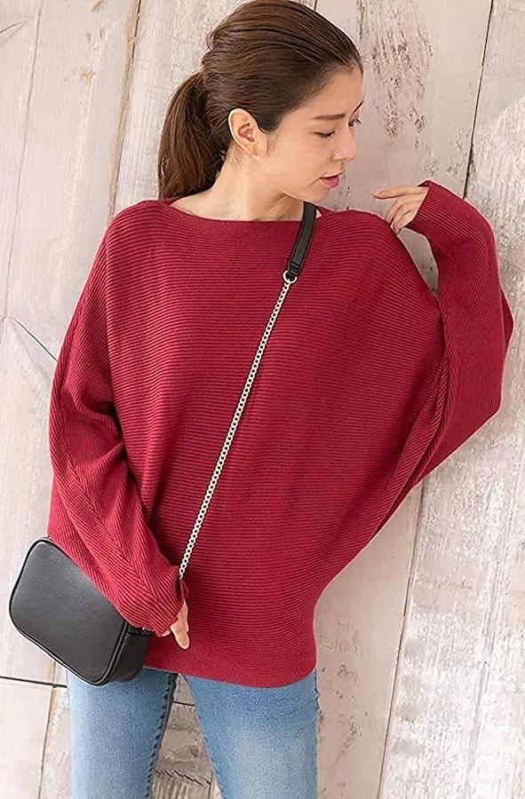 ドルマンスリーブ&ボートネックの大人可愛いヘビロテニット。