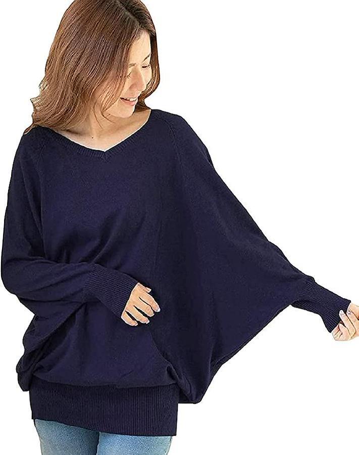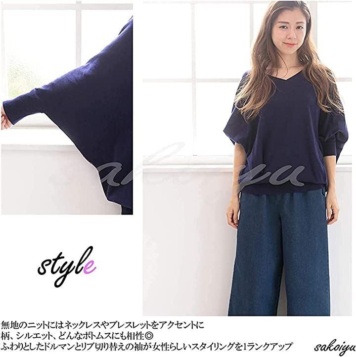 ふわりとしたドルマンとリブ切替の袖が女性らしいデザイン&締め付けない楽な着心地でお家ウェアとしても・