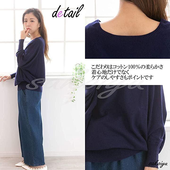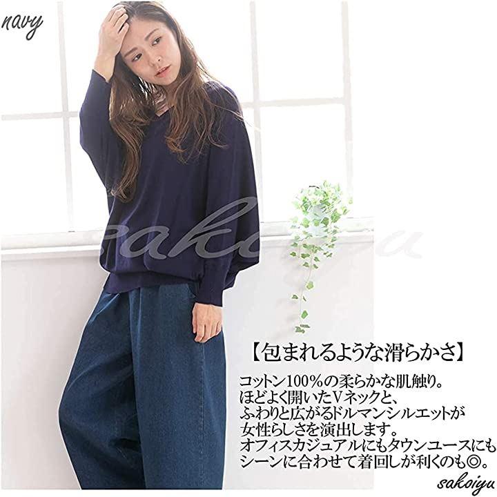 ・コットン100%の柔らかな肌触りで着心地・程よく開いたVネックと、ふわりと広がるドルマン・シルエットが、リラックス感がありながらもフェミニンな女性らしく、春ニットとしても活躍します。