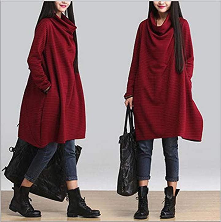 [エンプティオ]ドレープaラインチュニックワンピドロップショルダーゆったりネックレディース