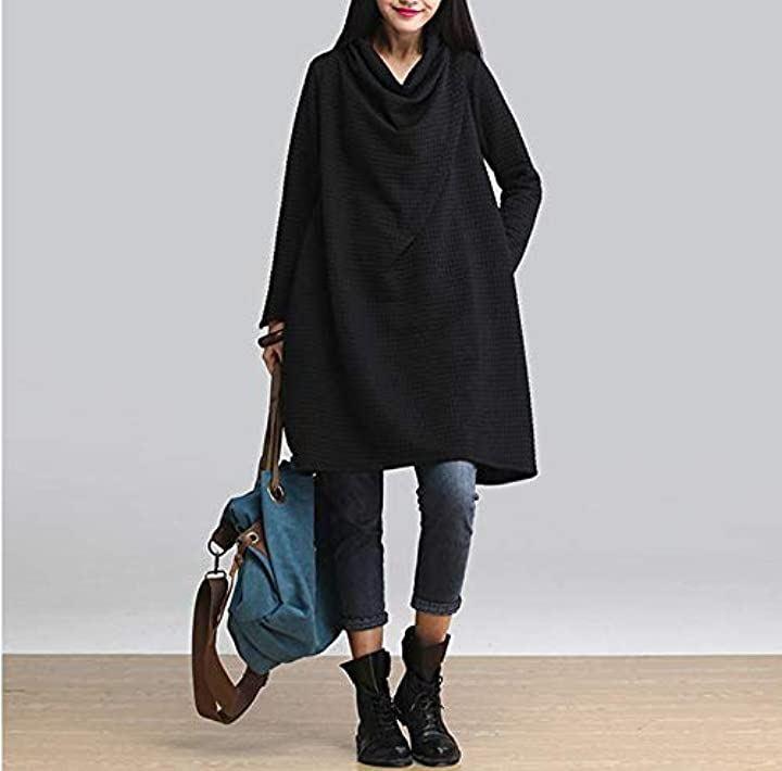 ・*ワッフル地で柔らかい今年らしいビッグシルエットのハイネックトップス**ルーズシルエットを生かしたレイヤードスタイルも楽しめる一着*