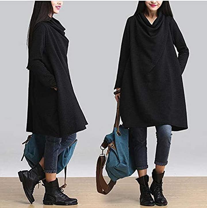 [エンプティオ]ドレープaラインチュニックワンピドロップショルダーゆったりネックレディース