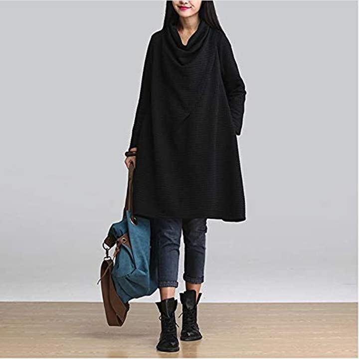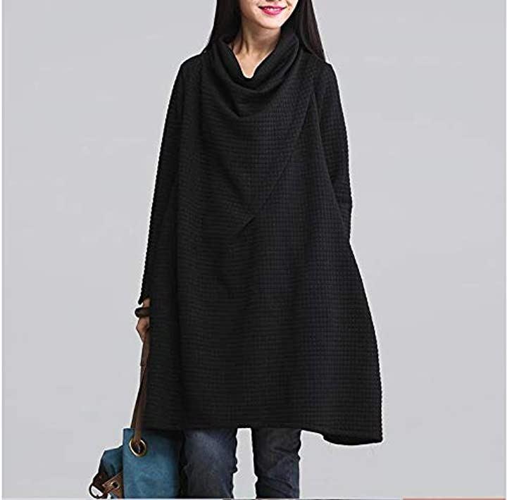 [エンプティオ]ドレープaラインチュニックワンピドロップショルダーゆったりネックレディース