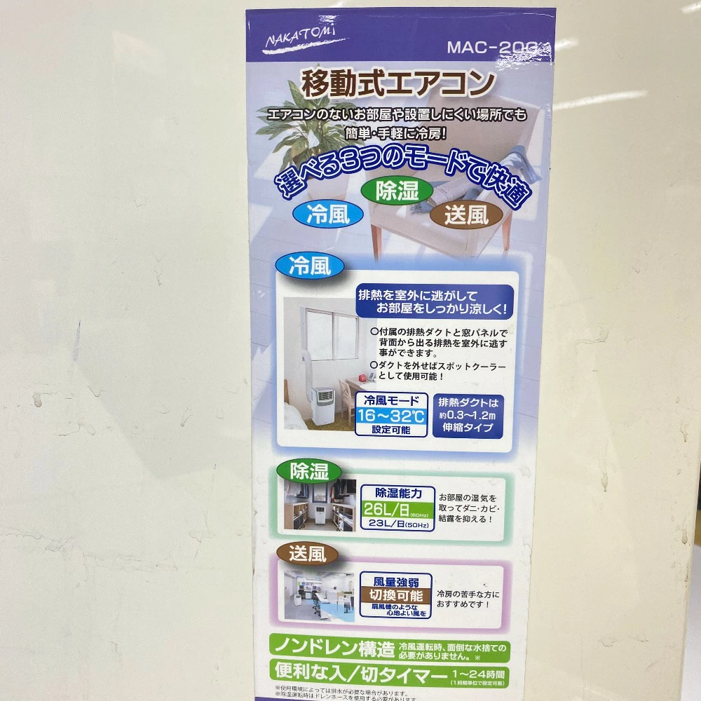 商品名 | ナカトミ ポータブルエアコン MAC-20 冷房 2021年製 |