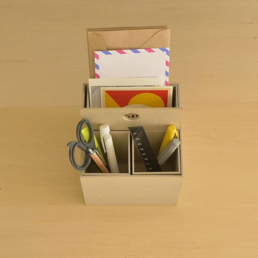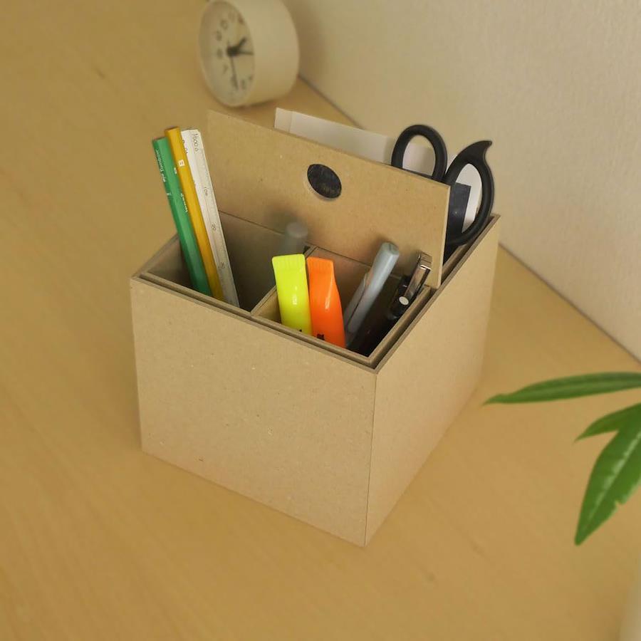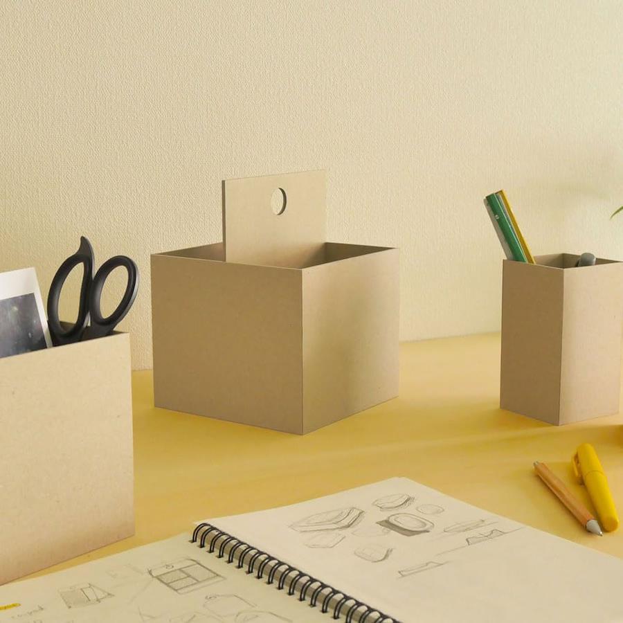 再生紙でつくった卓上収納シリーズ「リトレイ」。エッジのある洗練された美しい卓上用の紙製収納です。●<ハンドルボックスタイプ>指一本で軽々持ち運びできる便利なハンドル付きボックス!【再生紙でつくった卓上収納】retray は、古紙パルプ配合率100% 再生紙を使用した環境にやさしい収納シリーズです。紙の温かみを感じられるクラフト色とモノトーンで落ち着いた印象のライトグレー色の2色展開でインテリアにも馴染みます。●シリーズで揃えて統一感のある収納へ…3アイテム揃えて使用するのもおすすめです。同じ素材感や色、サイズを合わせることで統一感あるすっきりした印象をあたえます。