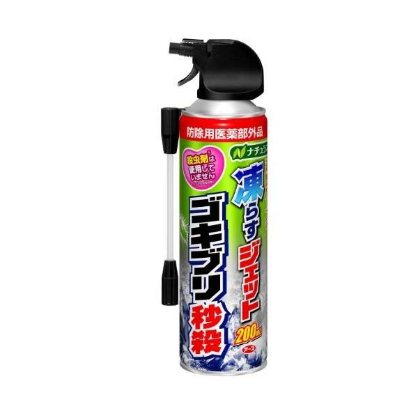【効能効果】・ゴキブリの忌避【成分】有効成分・・・ハッカ油3.33w/v%(原液濃度)その他の成分・・・ミリスチン酸イソプロピル、(E)-1.3.3.3-テトラフルオロプロペン(HFO-1234ze)、DME【注意事項】★1.してはいけないこと・30秒以上連続噴射しないでください。・人体に向かって噴射しないでください。また、噴射気体を吸入しないでください。・薬剤を吸い込まないようにしてください。・薬剤が眼に入らないように注意してください。・噴射中は喫煙、飲食等はしないでください。・閉め切った場所で大量に使用しないでください。使用中に気分が悪くなった場合には使用を中止し、通気の良いところで安静にしてください。・冷蔵庫の裏など噴射ガスが溜まりやすい場所に噴射するときは、使用量(隙間には約3秒)を守り決して過剰に噴射しないよう注意してください。・火炎に向かって噴射しないでください。キッチン等で使用する場合は、コンロや湯沸器等の火(種火)、浴室などで使用する場合は、給湯器等の種火を切ってから使用し、使用後は十分換気してください。引火・爆発のおそれがあります。・噴霧が裸火や暖房器具(ファンヒーターやストーブ等)に触れると有毒ガスが発生するので、火気のある場所の付近では使用しないでください。・噴射によってできる氷塊には、燃焼のおそれがあるので火気を近づけないでください。・ガス警報器が作動する危険があるので、注意してください。★2.相談すること・万一、身体に異常が起きた場合は、直ちに本品がハッカ油を配合した殺虫剤であることを医師に告げて、診療を受けてください。・万一、薬剤が眼に入ったときは、直ちに水でよく洗い、異常があれば眼科医の診療を受けてください。★3.その他の注意・定められた使用方法、使用量を守ってください。・皮膚、飲食物、食器、子供のおもちゃ、観賞魚、小鳥などのペット類、飼料、植物にかからないようにしてください。・植物に直接かかると植物をいためる場合があります。・本品には凍結効果があり、皮膚にかかると凍傷を起こすことがあるので、皮膚についた場合は、直ちに水で洗い、更に石けんを用いてよく洗ってください。・アレルギーやかぶれを起こしやすい体質の人は、薬剤に触れたり、吸い込んだりしないようにしてください。・変色、シミのおそれがあるので、壁、床、家具、建具、大理石や御影石等の石材や自動車などの塗装面にかからないようにしてください。・パソコン、AV機器、電灯等の周りでは使用しないでください。・換気してください。★4.保管上の注意・直射日光や火気を避け、子供の手の届かない涼しいところに保管してください。・缶のさびを防ぐため、水周りや湿気の多い場所には置かないでください。容器が錆びてガス漏れや破裂を引き起こすおそれがあります。★5.廃棄上の注意・本品は、使い切ってから捨ててください。・捨てるときは、風通しが良く、火気のない屋外で風下に向かって人にかからないように噴射レバーを引き、噴射音が消えるまでガスを抜いて、各自治体の定める方法で廃棄してください。