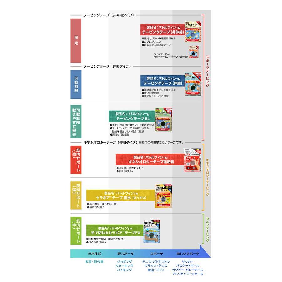 ●正しいテーピングの知識・技術をご理解の上、ご使用ください。使用法について弊社ホームページをご覧ください。