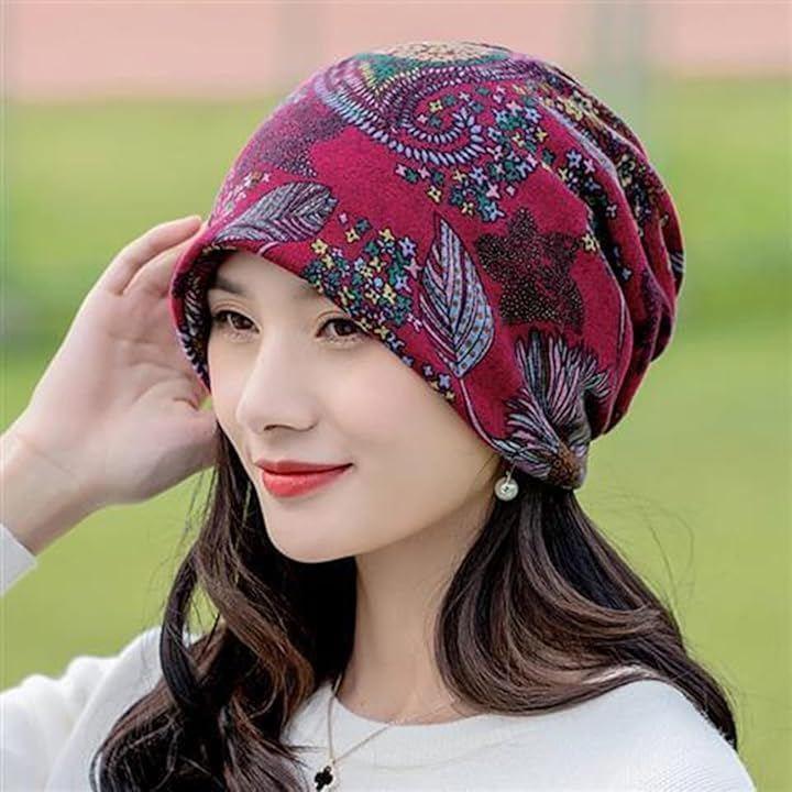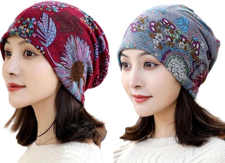ニットキャップ 帽子 2枚組 医療用帽子 花柄 ネックウォーマー ケア帽子 ワッチキャップ ニット帽 レディース B かっこいい かわいい おしゃれ 人気