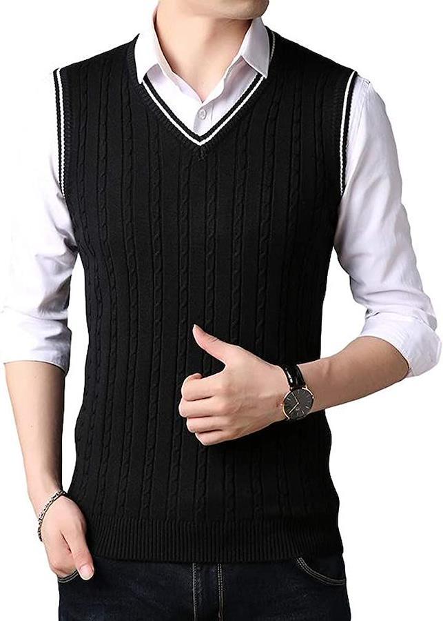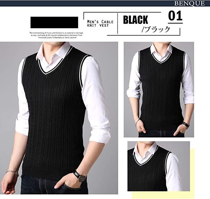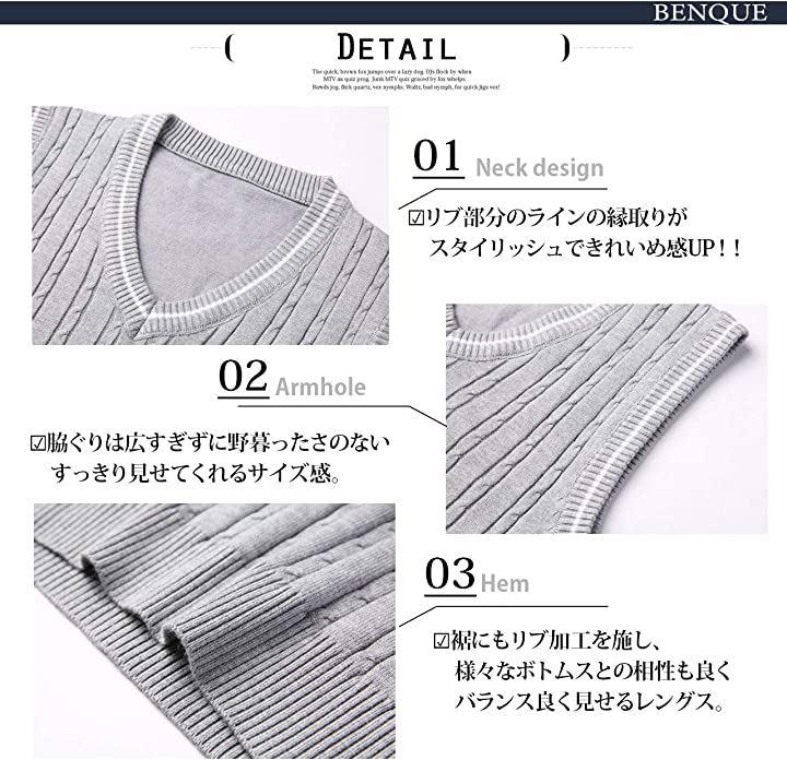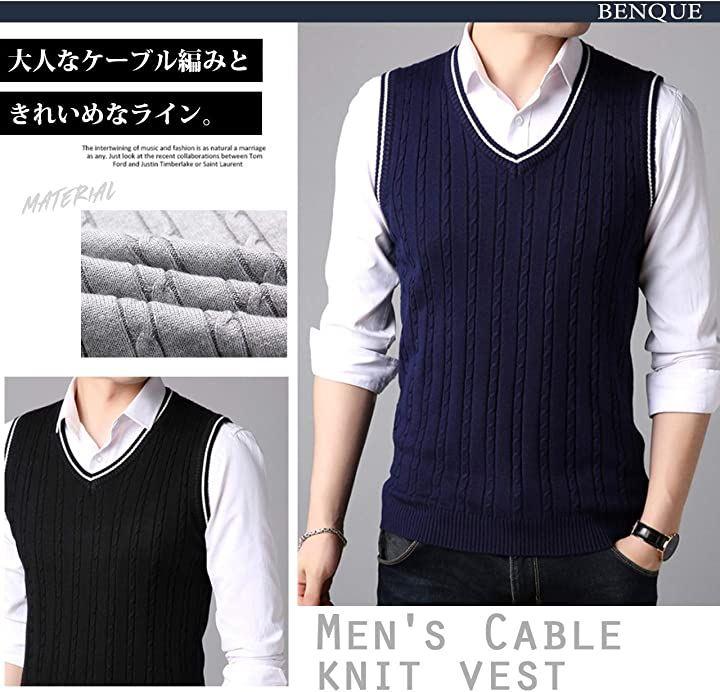 ビジネスにもカジュアルにも使いまわせる使い勝手の良いケーブル編みニットベストです。