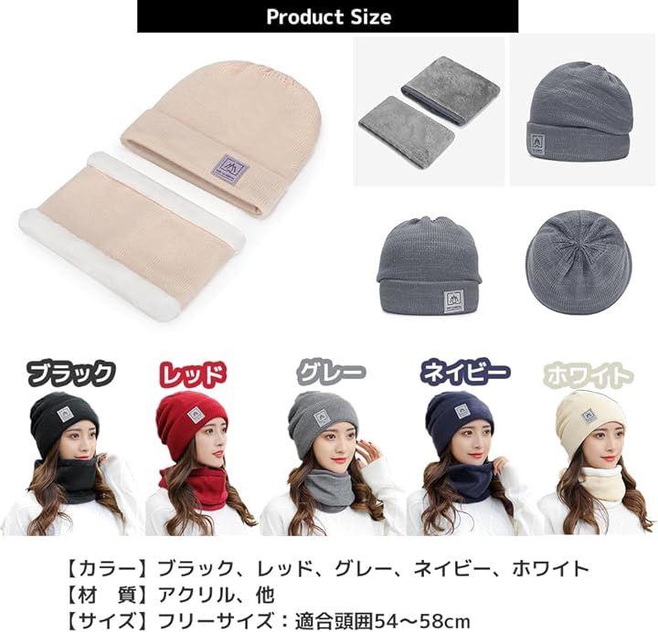 ・秋冬の通勤・通学、お出かけ、スキーやスノーボードなど冬のレジャー、アウトドアにおすすめのレディースニット帽とネックウォーマーセットです。