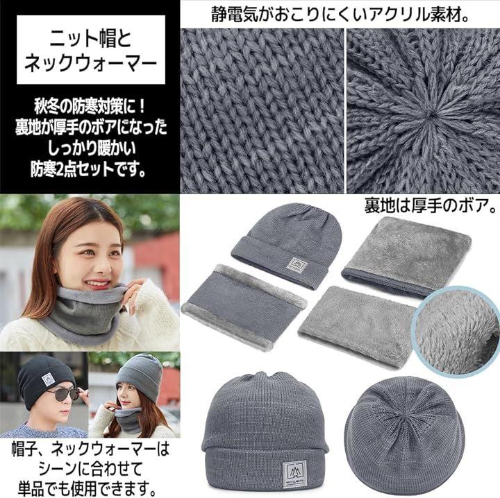 ・秋冬の通勤・通学、お出かけ、スキーやスノーボードなど冬のレジャー、アウトドアにおすすめのレディースニット帽とネックウォーマーセットです。