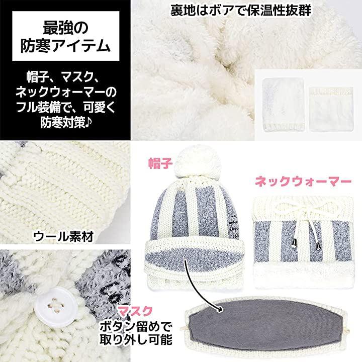 [FUPUTWO]ニット帽ネックウォーマーレディース目出し帽ポンポン防寒アウトドア
