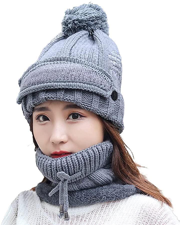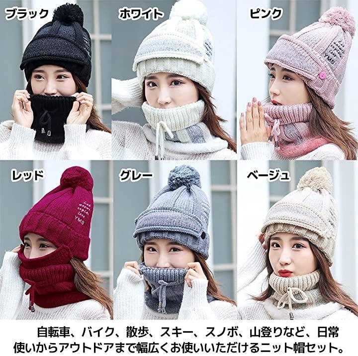 [FUPUTWO]ニット帽ネックウォーマーレディース目出し帽ポンポン防寒アウトドア