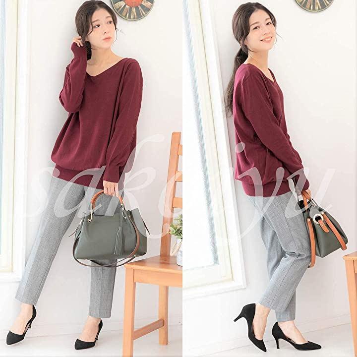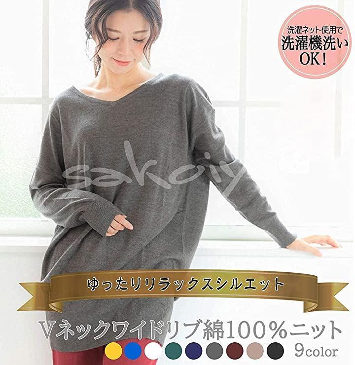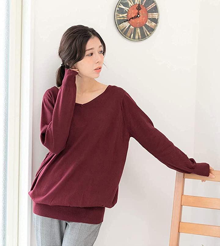 ・無地で程よく開いたVネックニットにはネックレスやブレスレットも映えます・きれいめ秋色カラーとちょっと長めのセミロング丈が、体型カバーしながら女性らしいスタイリングを1ランクUPし、秋冬コーデも簡単に。