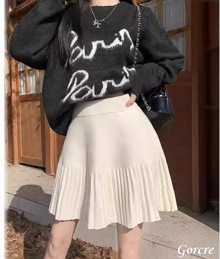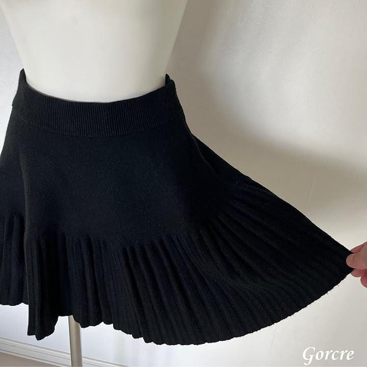 下半分は細かいプリーツが可愛くふんわりエレガントで脚長効果♫ウエストキュッとスッキリと、プリーツフレアで大人かわいい。スタイルアップが期待できちゃうニットミニスカートです。