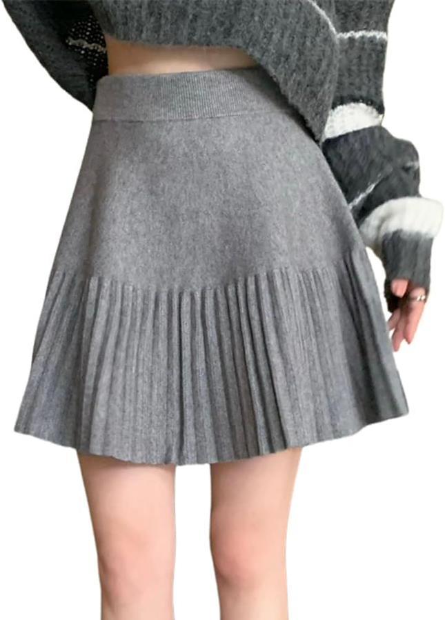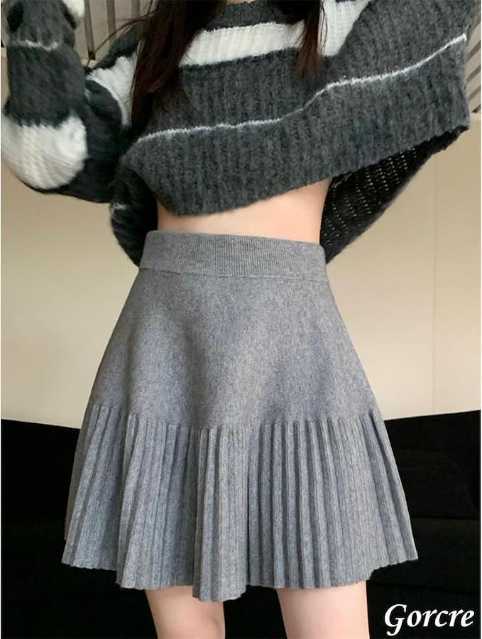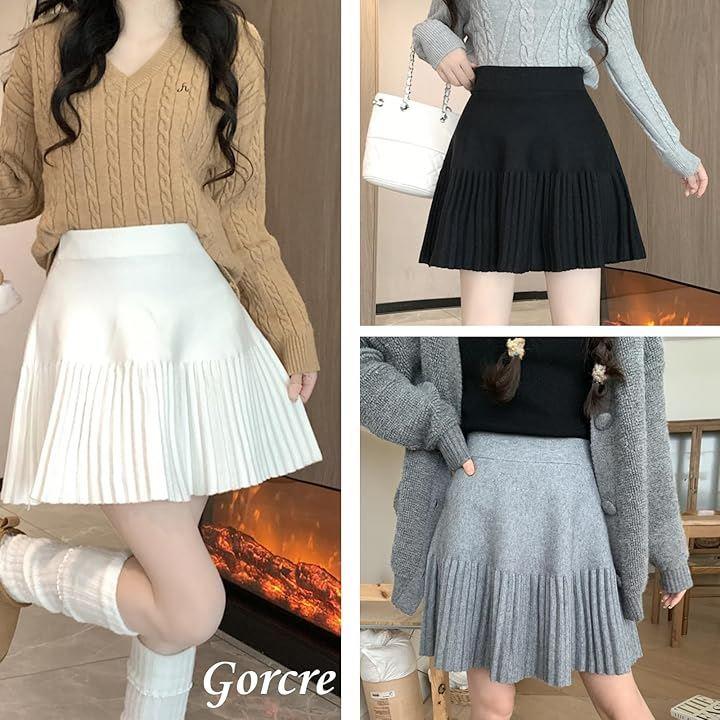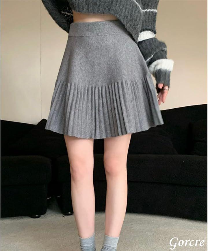 下半分は細かいプリーツが可愛くふんわりエレガントで脚長効果♫ウエストキュッとスッキリと、プリーツフレアで大人かわいい。スタイルアップが期待できちゃうニットミニスカートです。