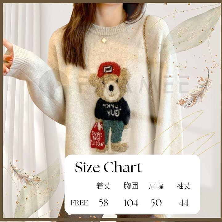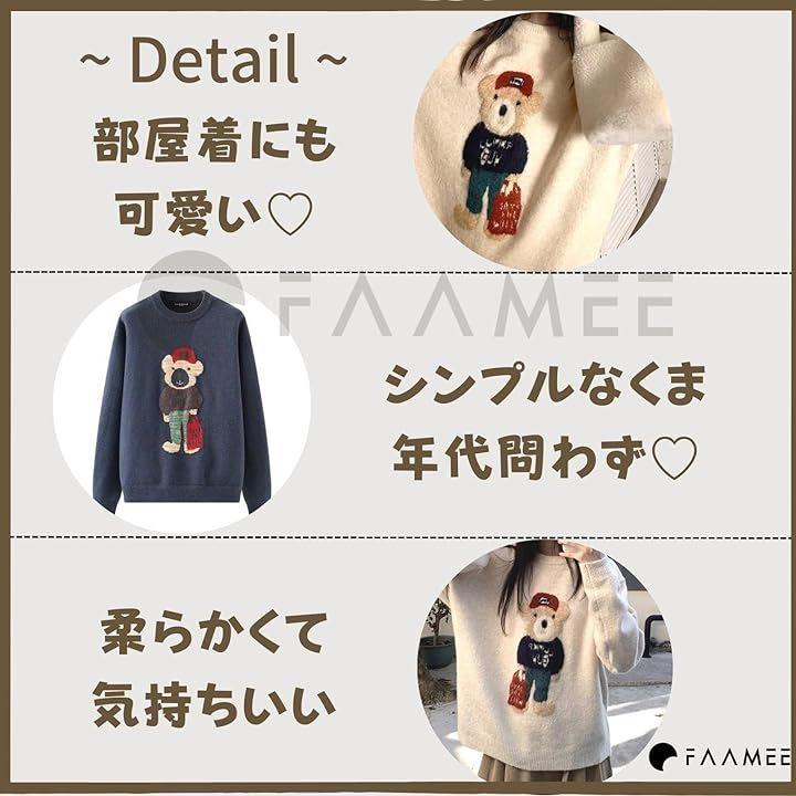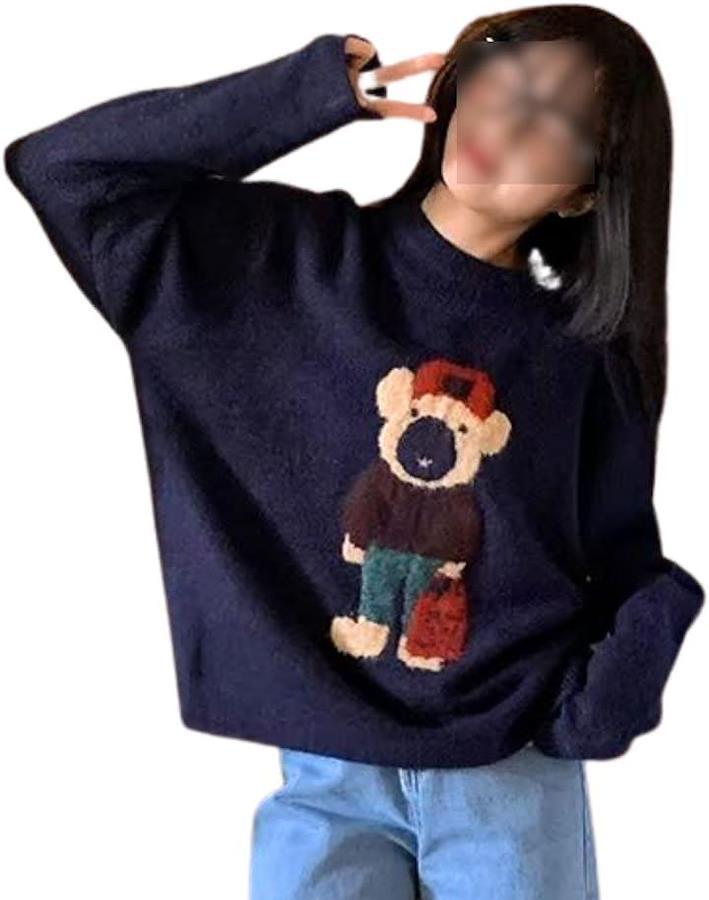 ニット レディース 長袖 ゆったり くま かわいい トレーナー トップス 部屋着 クルーネック