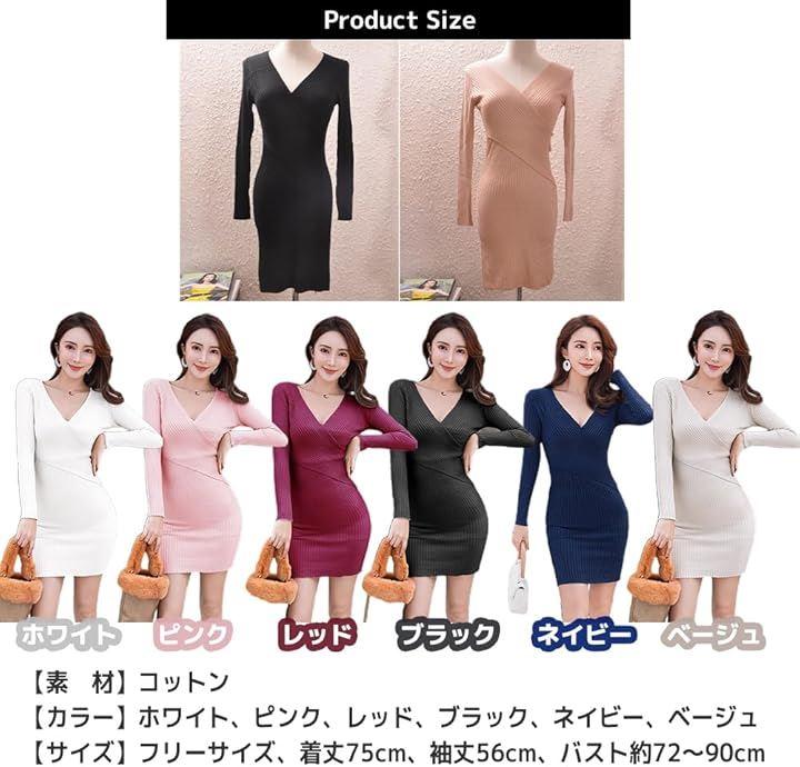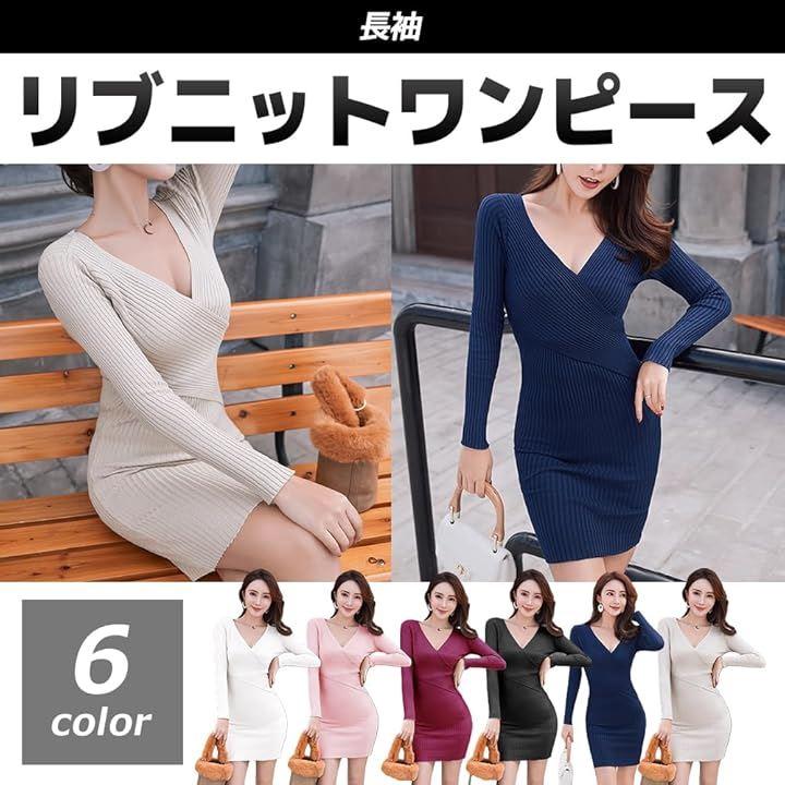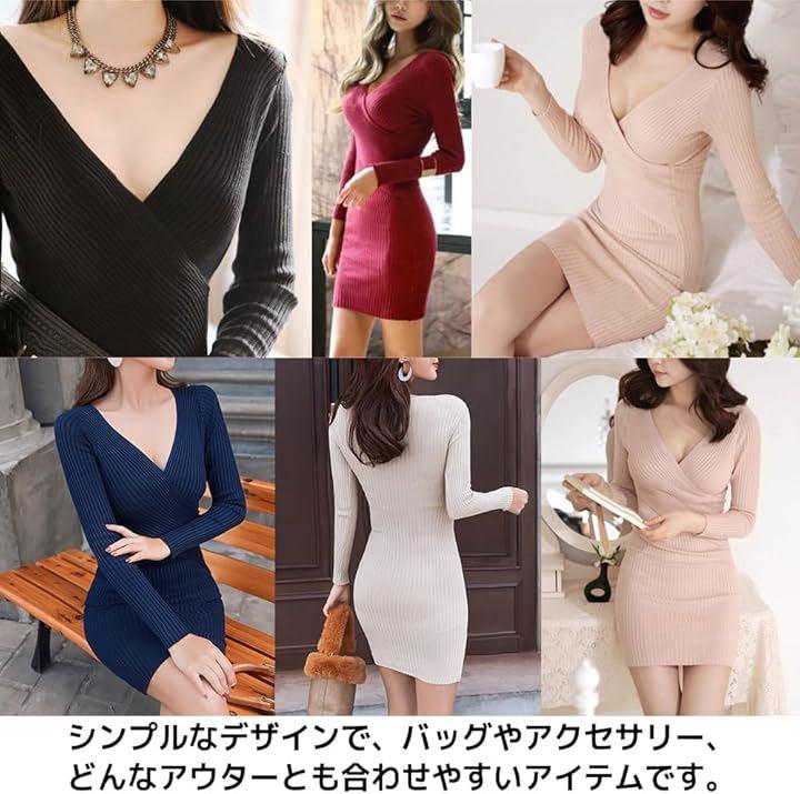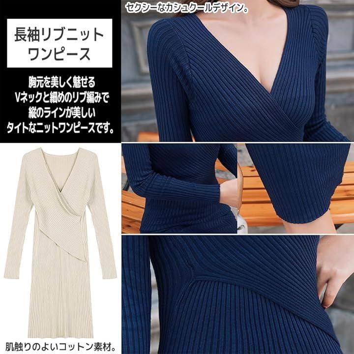女性らしくさりげなくスタイルアップしてくれるセクシーなレディース長袖リブニットワンピースです。