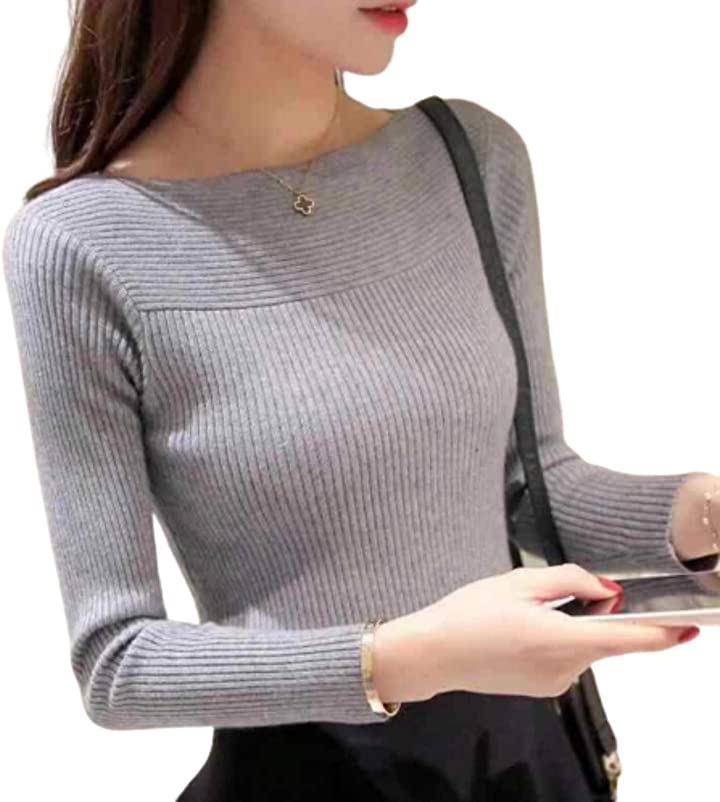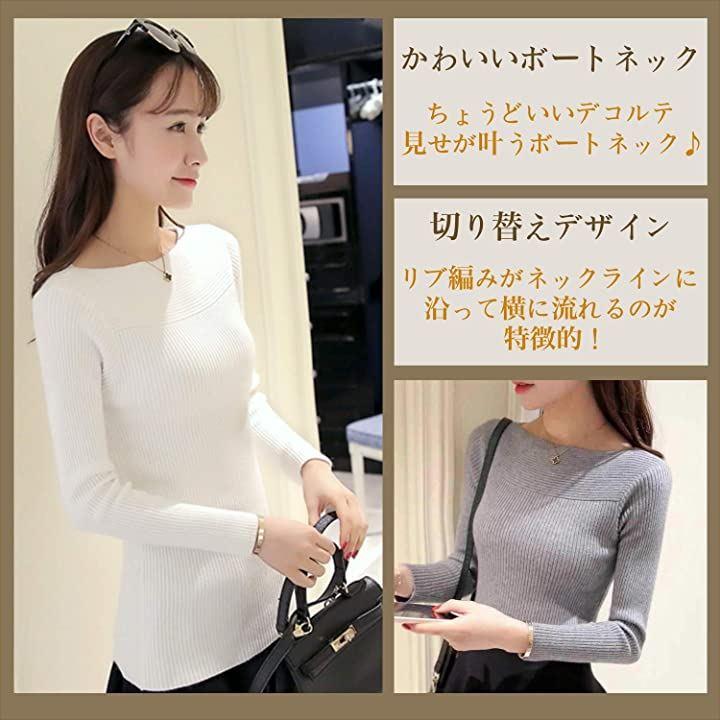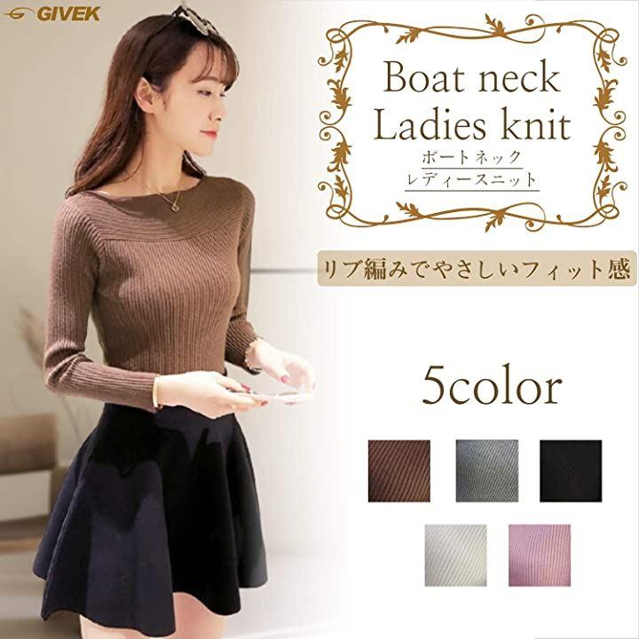 リブ編みとボートネックが体型を美しく見せてくれます。