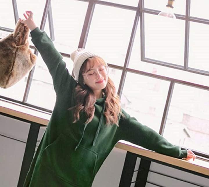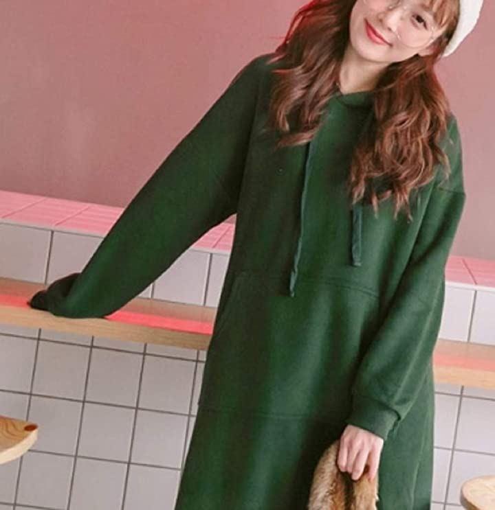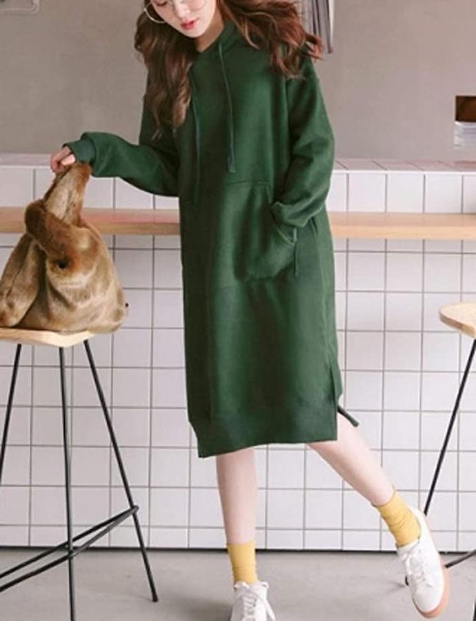 さっと1枚でオシャレに着こなしできる無地、黒、グレー、グリーン、スウェットロング丈ワンピースは年中続く不動の人気*