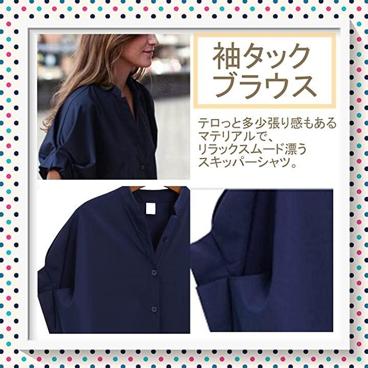 袖のタックプリーツがポイントのシャツブラウステロっと多少張り感もあるマテリアルで、リラックスムード漂うスキッパーシャツ。