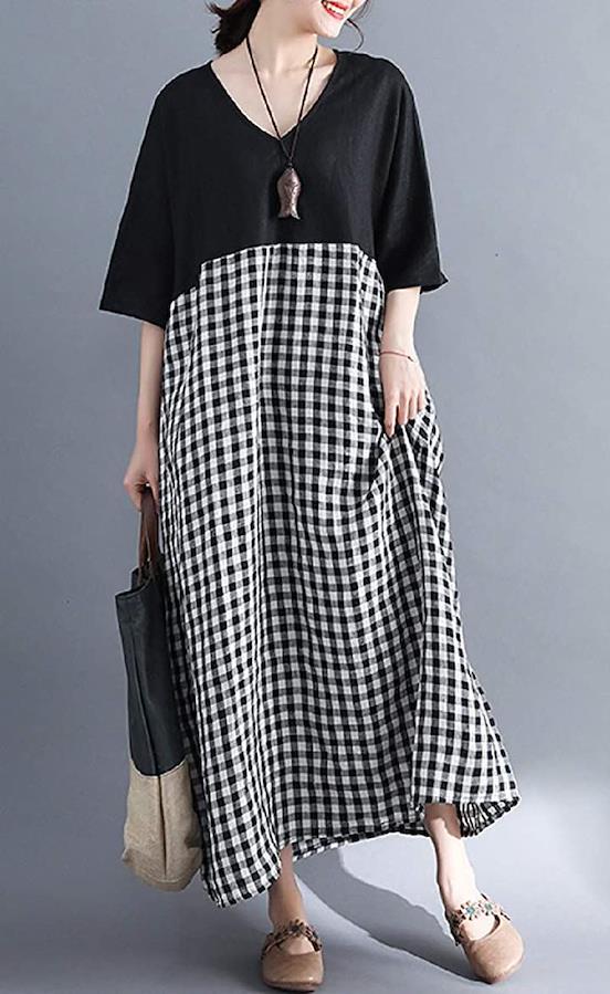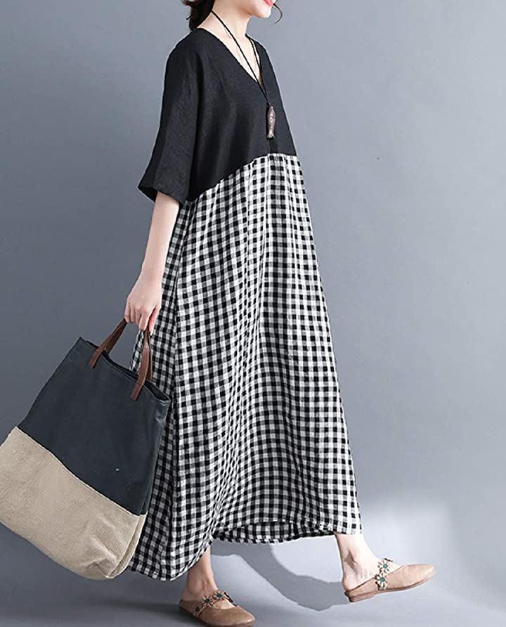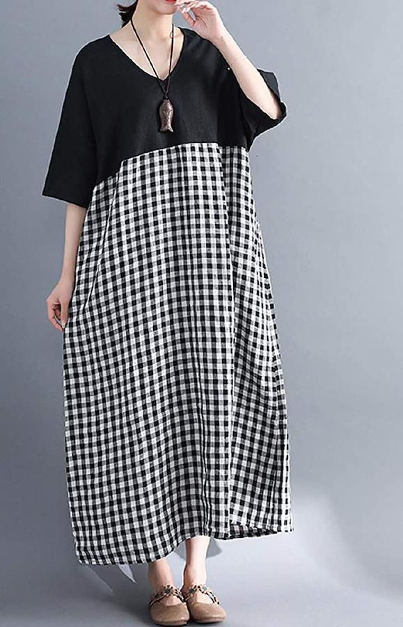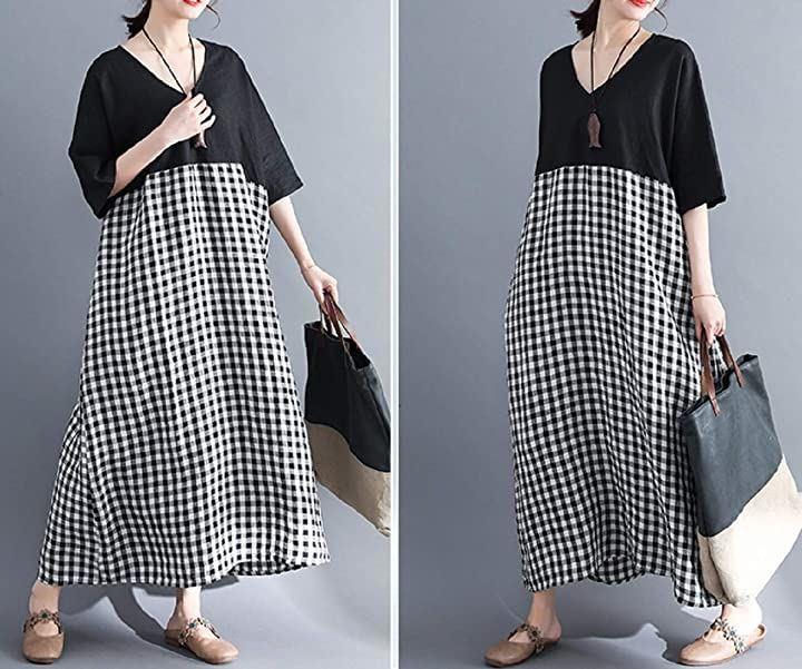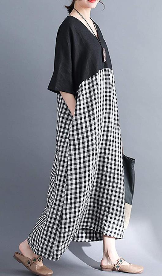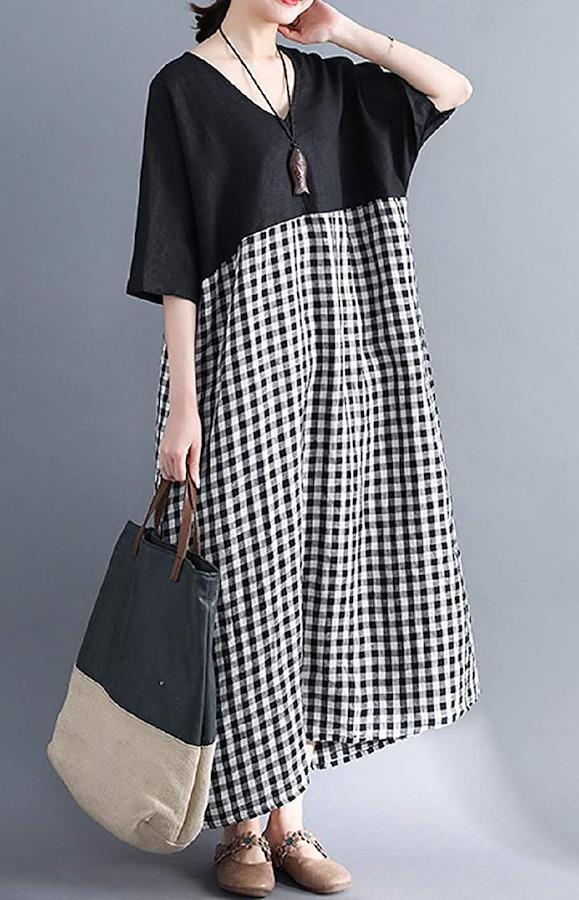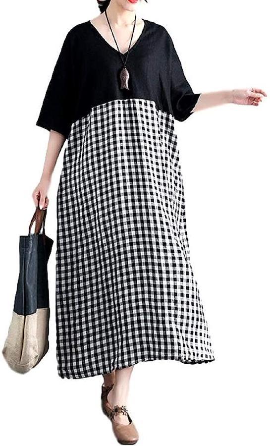 [ニブンノイチスタイル]1/2style袖ありスタイル夏ドルマンバイカラーチェックワンピースレディース