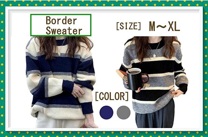 ・ストリート感のある大きすぎないビッグシルエットデザイン、旬な着こなしと存在感を発揮するボーダーニット。