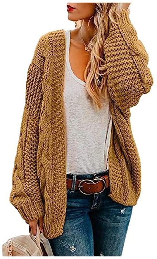 腰丈まである着丈のざっくカーディガンは暖かく、リラックス感を演出してくれます。