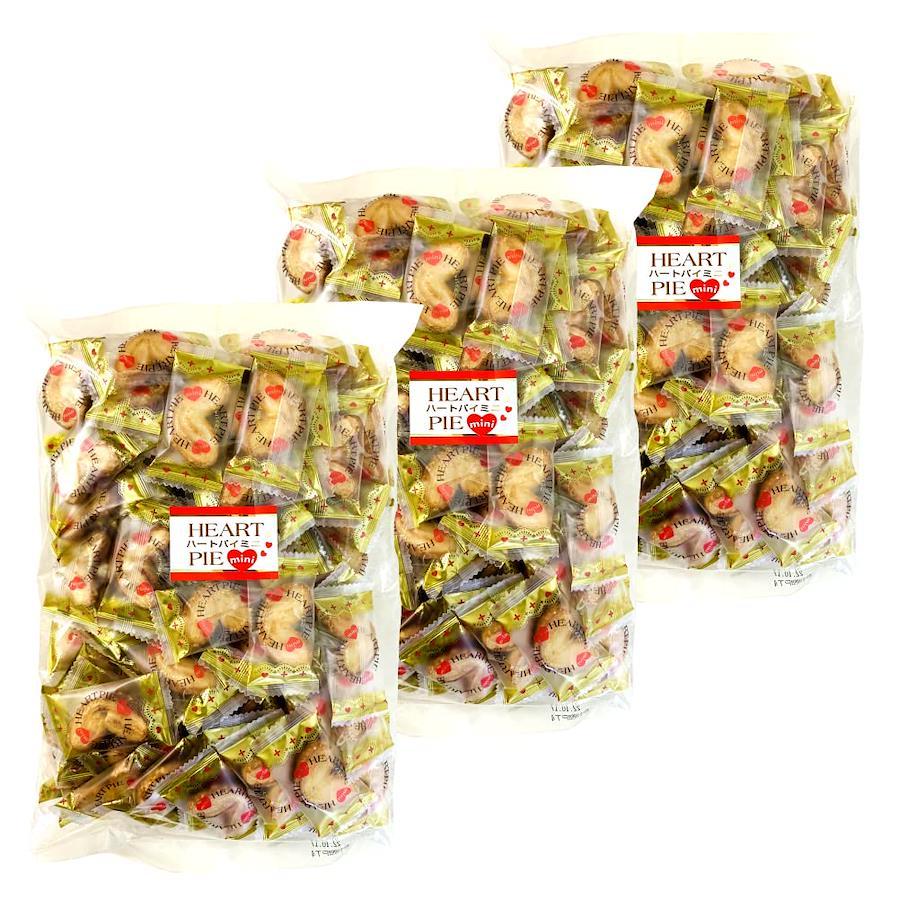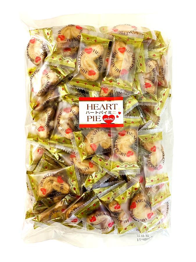 かわいいハート型のミニパイです。食べやすいように1つずつ個包装されています。1袋300g入りの中に個包装、80個程度が入っています。たっぷり入った業務用サイズ300g入り×3袋セットです。周りにまぶされたザラメの砂糖が、さらに香ばしいパイの美味しさを引き立てます。何層にも織りこまれたパイ生地から生まれるサックサクの軽やかな食感はクセになります。イベントやお祭りなどの景品やお茶菓子にも利用しやすいと好評です。お酒のおつまみにもお勧めです。【重要】メーカーによる商品リニューアルに伴いパッケージ(内容量も含む)変更が行われた場合、新パッケージでお届け致します事ご了承願います。