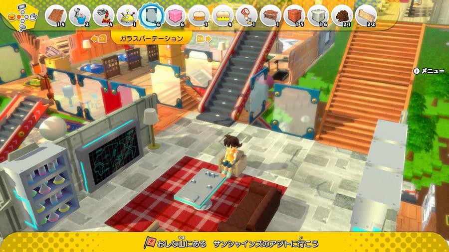 ダンボールからコンクリートまで、壁や床などを様々なケンザイで自由にタテモノを作り、ハンモックやソファからエスカレーターまで多種多様なインテリアで自分好みに飾り付け、強力なワナを配置して最大・最強のヒミツキチをつくろう!
