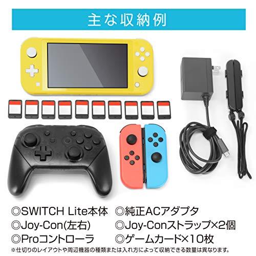 特徴1:SWITCH Lite周辺機器をまとめて収納できる大容量EVAバッグです。・本体、Proコン、Joy-Con、Joy-Conストラップ、ACアダプタ、ゲームカード10枚などを一度に収納することが可能です。