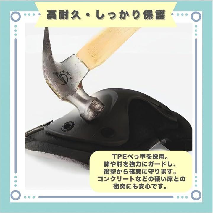 「高耐久・しっかり保護」硬質プラスチックを使用しているため、膝や肘を強力にガードし、衝撃から守ります。