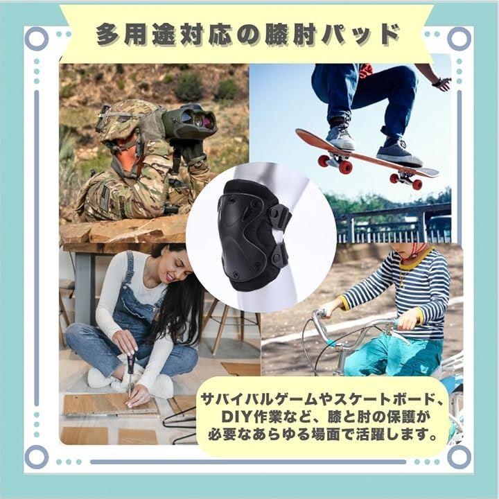 「多用途対応の膝肘パッド」サバイバルゲームやスケートボード、DIY作業など、膝と肘の保護が必要なあらゆる場面で活躍します。